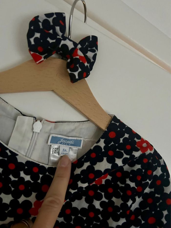 Robe velours imprimé de chez Jacadi teille 8 ans vendue avec sa barrette assortie