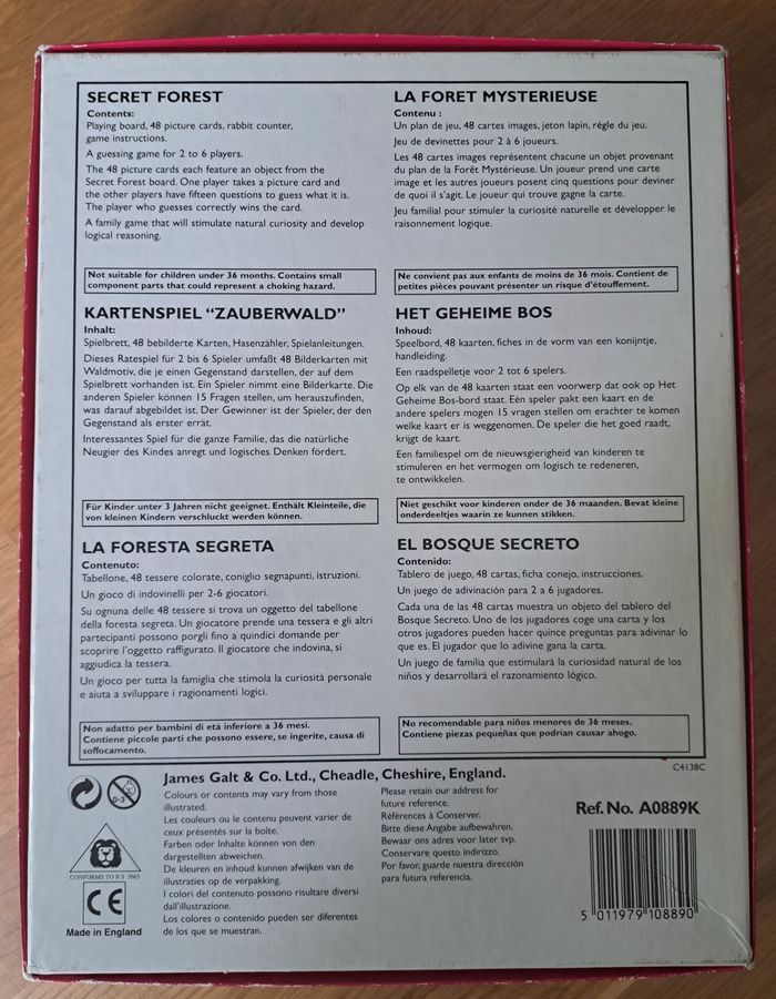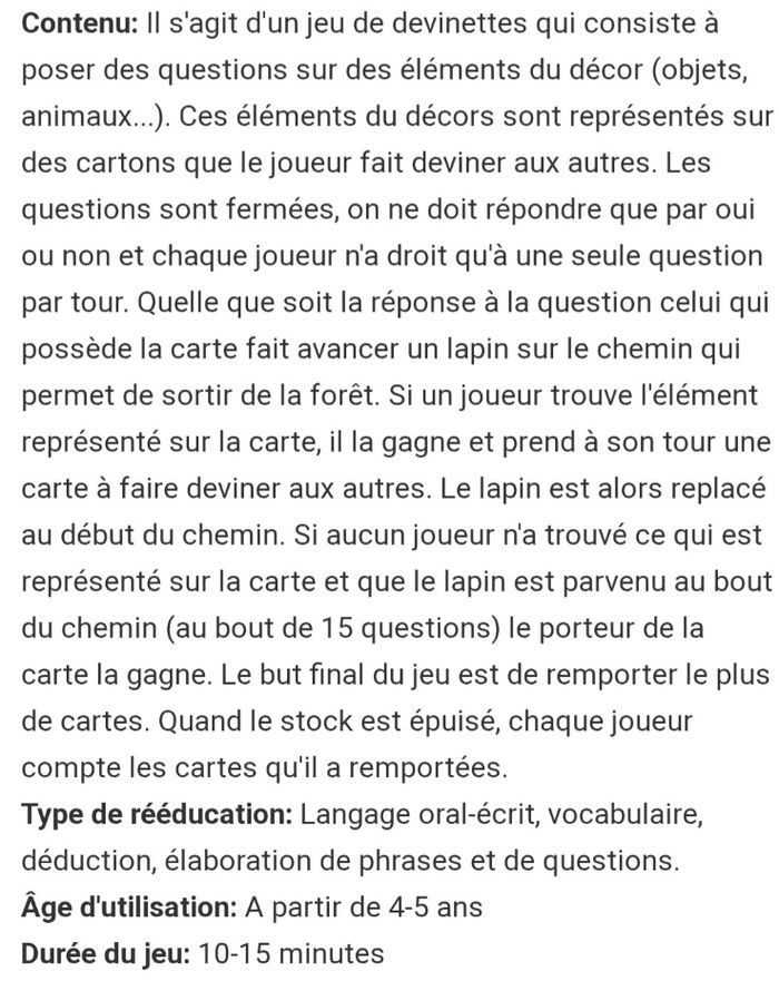 Vends jeu de langage / devinettes La forêt mystérieuse. Editions GALT Matériel orthophonique contenant un plateau, 48 images, un pion et une notice. De 2 à 6 joueurs. Matériel complet, en très bon état, sauf la boîte légèrement usée.