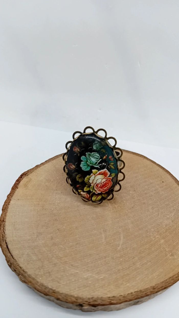 Bague réglable cabochon effet vintage - photo numéro 1