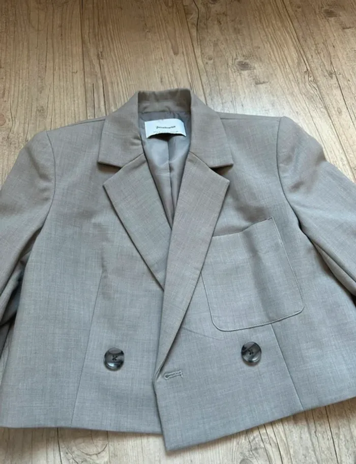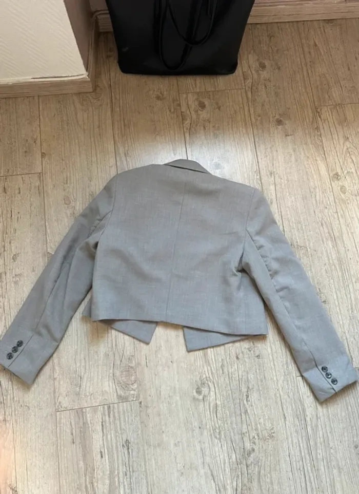 Blazer stradivarius gris S 36 crop - photo numéro 1