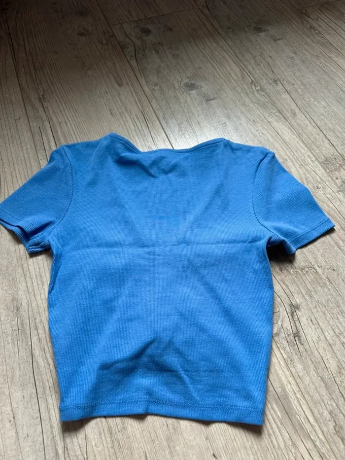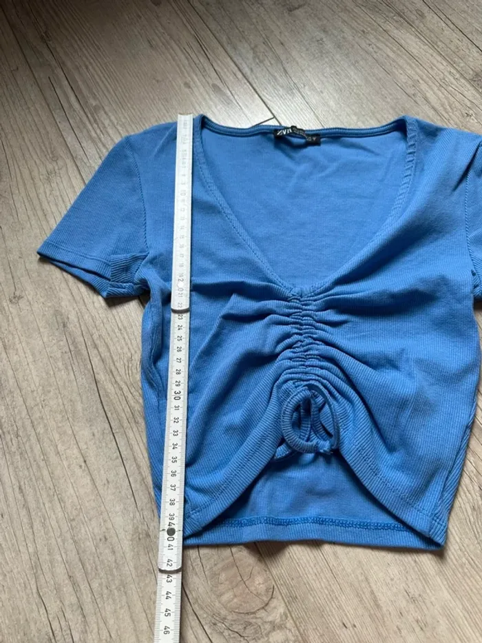 Top bleu zara froncé devant (faux noeud) Taille S 36 Porté 1 après-midi donc excellent état Pas de photo porté Envoi rapide et soigné Col v plongeant