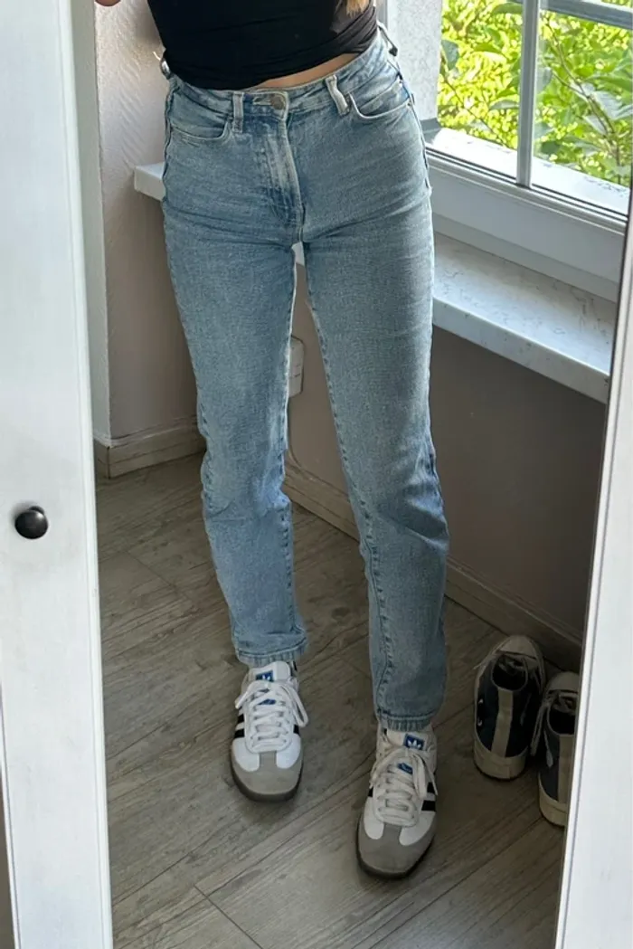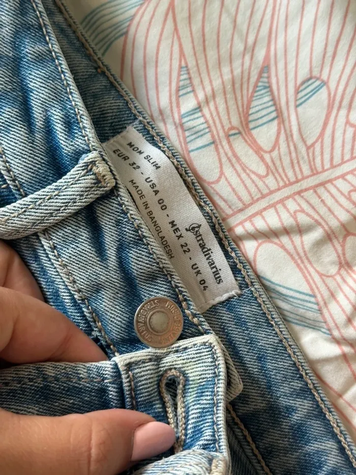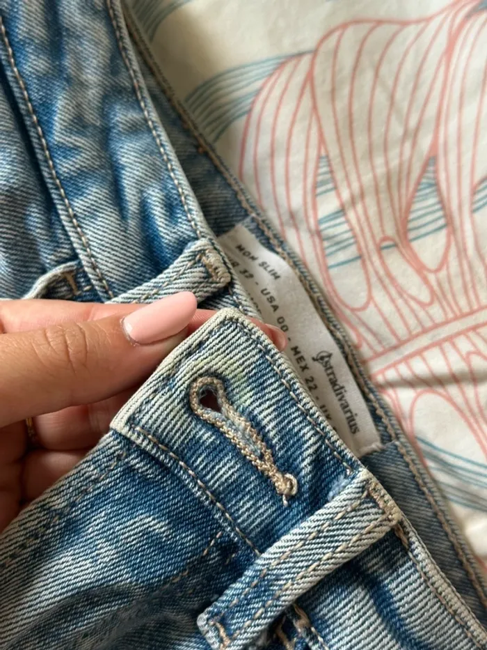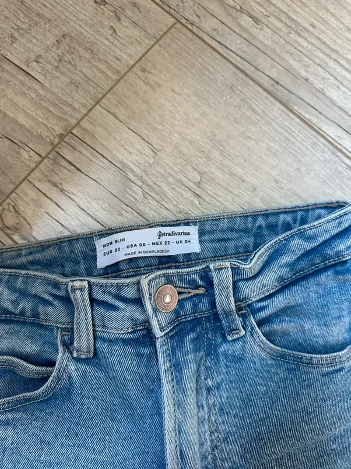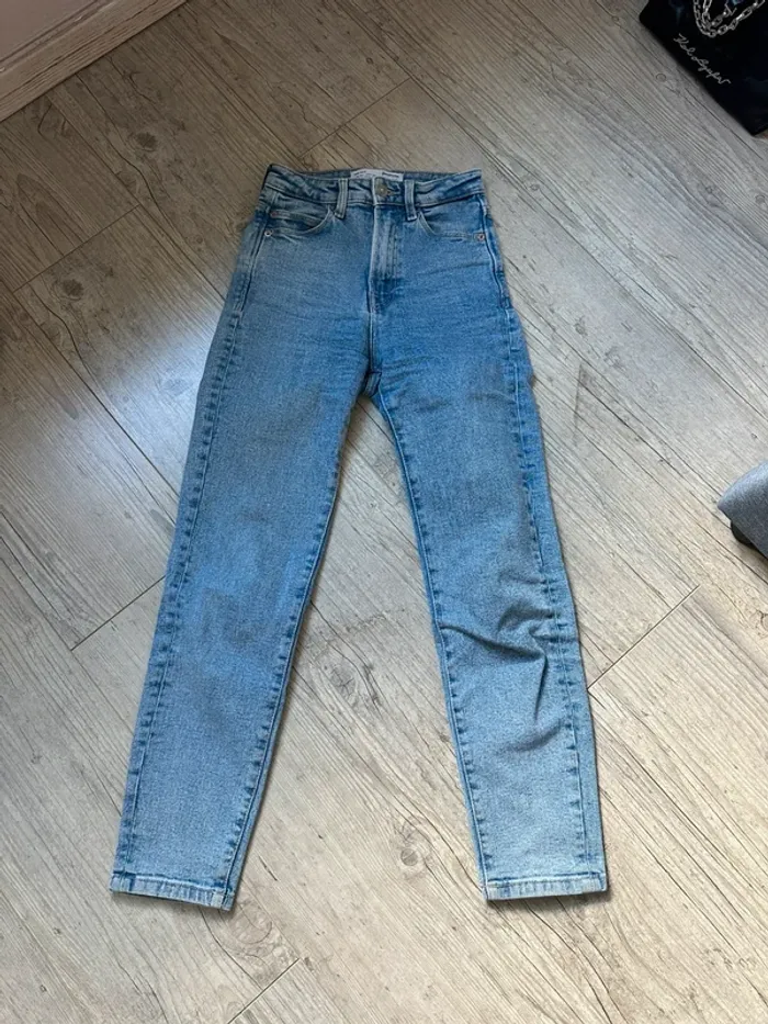 Jeans bleu délavé mom slim stradivarius xxs 32