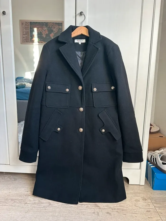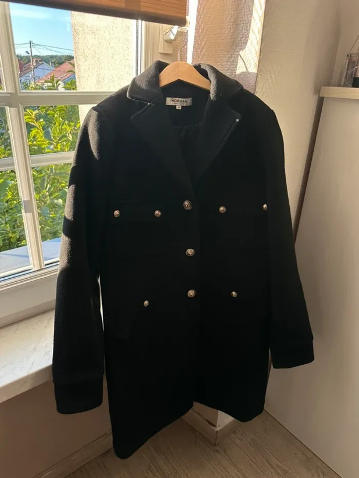 Manteau noir Morgan femme porté une après-midi seulement taille 36 S détail de boutons dorés excellent état Envoi rapide et soigné