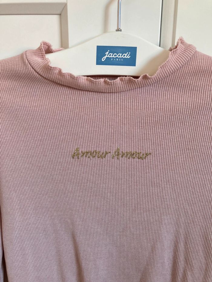 Sous-pull rose très confortable Inscription or amour amour Taille 6 ans 116 cm Marque Vertbaudet En bon état car bien porté ma ma fille et trace de stylo au dos voir photos