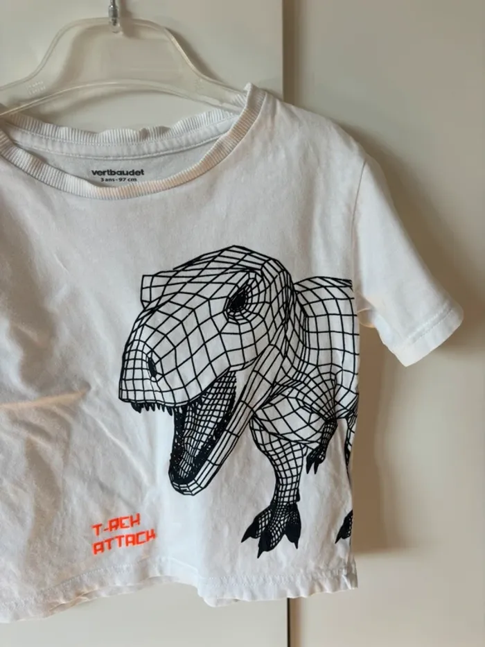 T-shirt garçon motif effet 3D dinosaure 🦖 inscription T-Reh Attach Taille 3 ans 97 cm Marque Vertbaudet