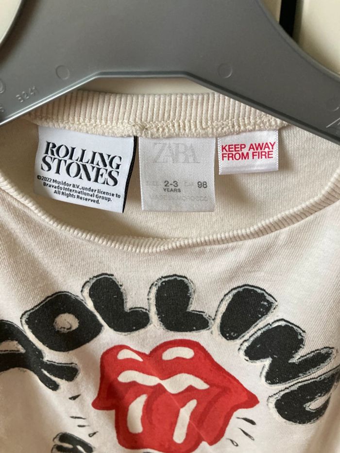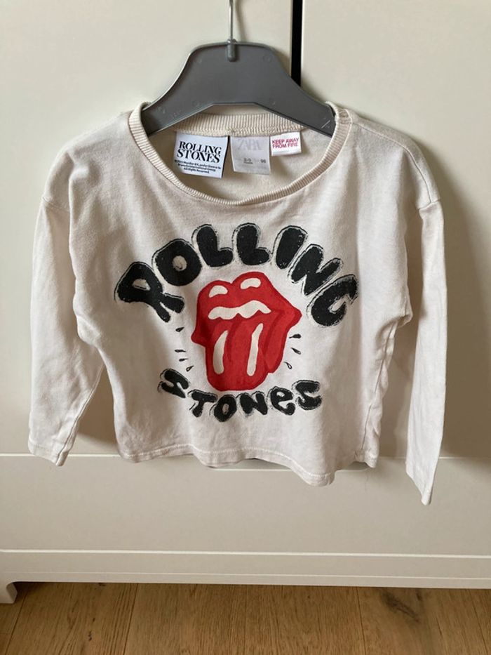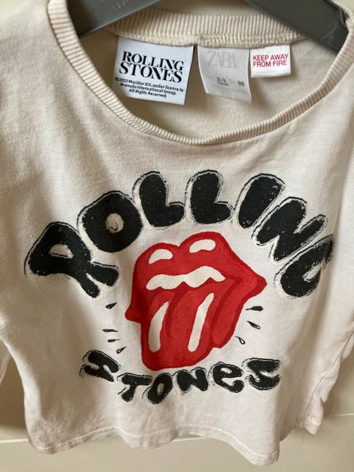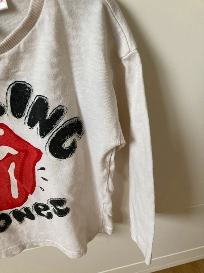 Tee-shirt crème manches longues Motif Rolling Stones Marque Zara Taille 2-3 ans 98 cm En bon état car petit trou sur le bas devant et petites tâches à l’arrière très peu visibles