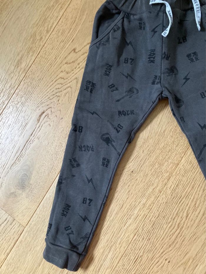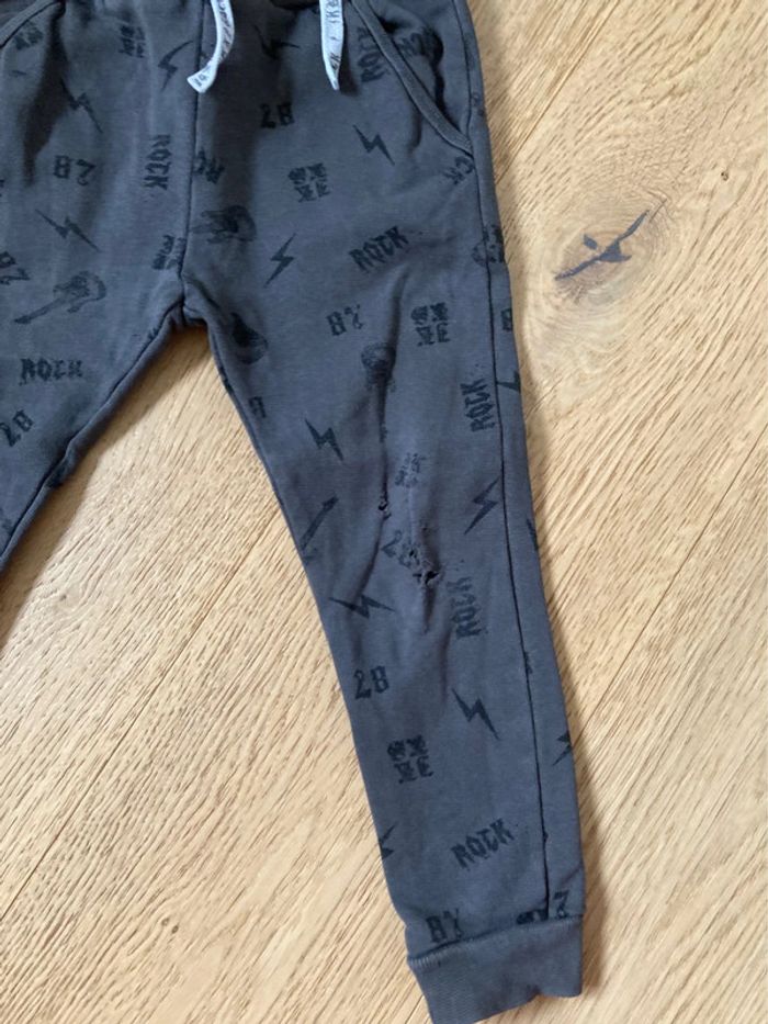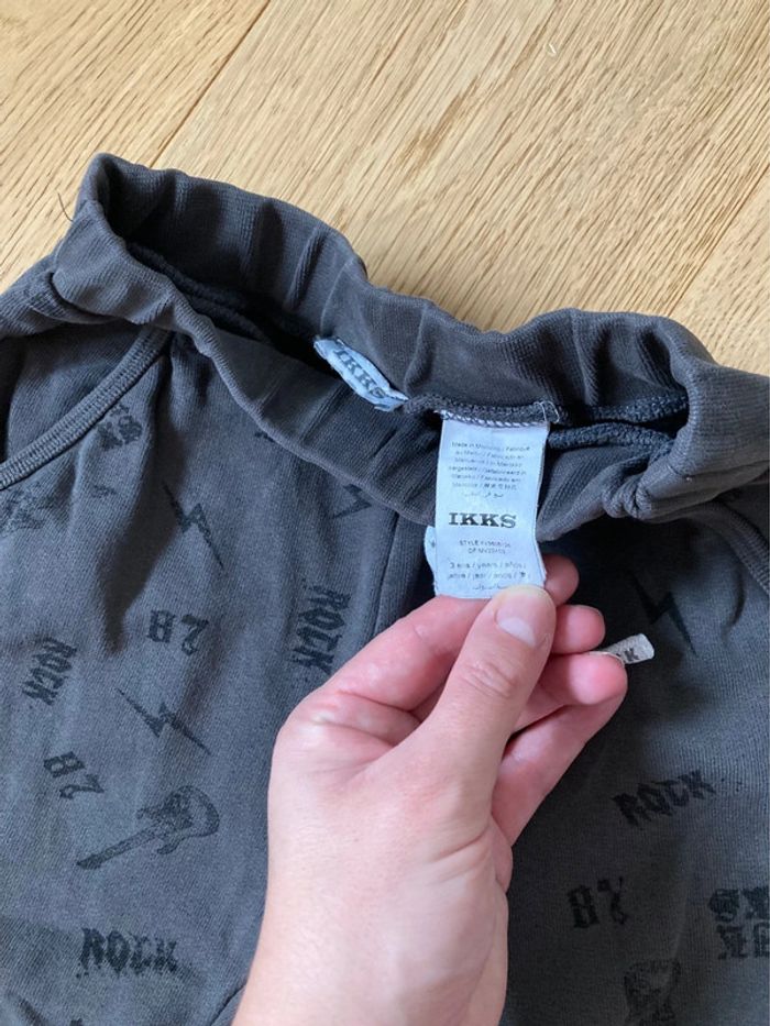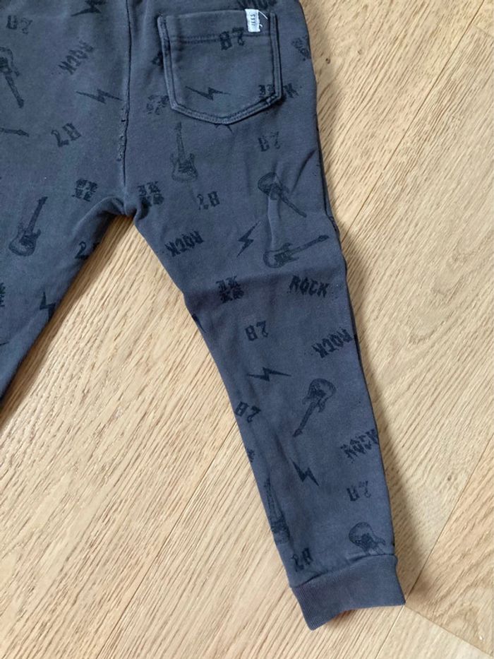 Pantalon noir jogging motifs rock 🎸 Marque Ikks Taille 3 ans État satisfaisant car craqué au genou et à l’arrière au niveau du fessier