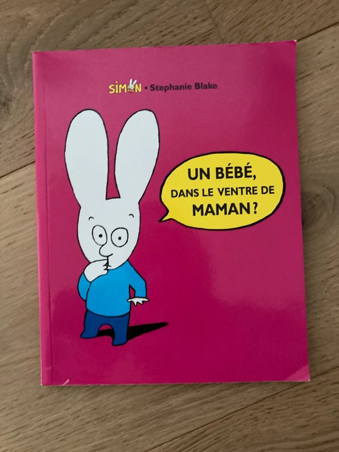 Livre pour enfant du personnage Simon le lapin 🐰 Un bébé dans le ventre de maman Auteur Stephanie Blake Parfait pour annoncer une grossesse 🤰 En bon utilisé car utilisé par mes enfants quelques traces d’usure mais pas de page déchirée…