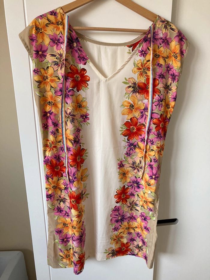 Tunique fleurie Marque Sinéquanone Lien au dos pour fermer Il n’y a plus l’étiquette de la taille mais c’est une taille M 38