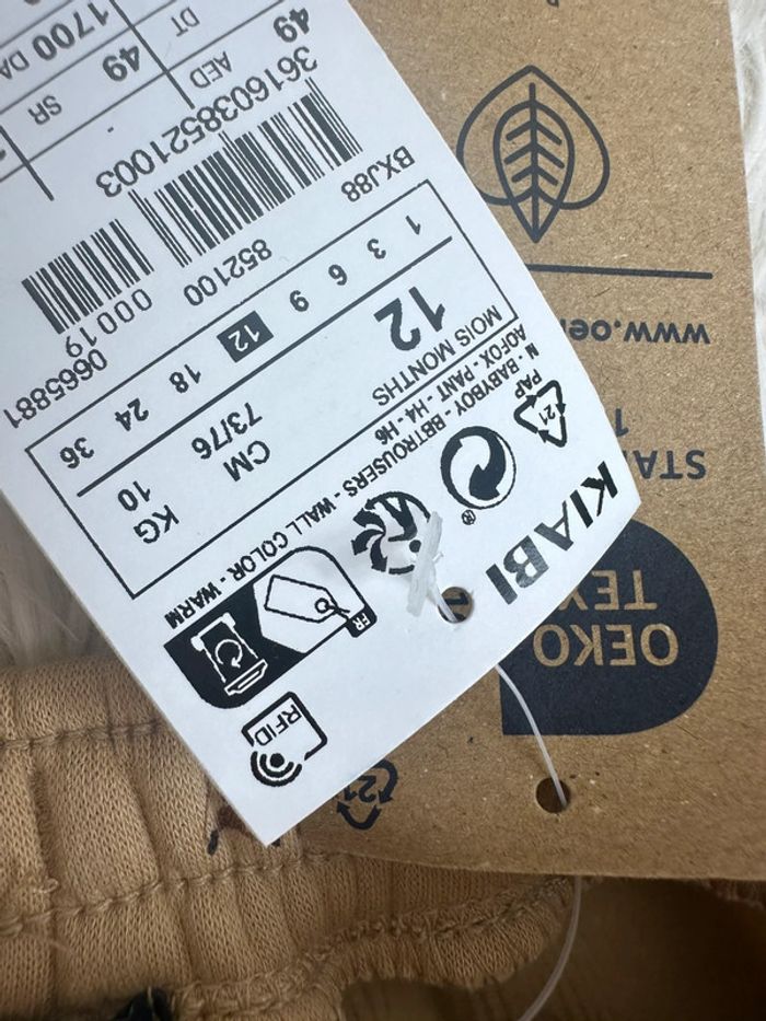 Pantalon molleton renard beige Kiabi taille 12 mois