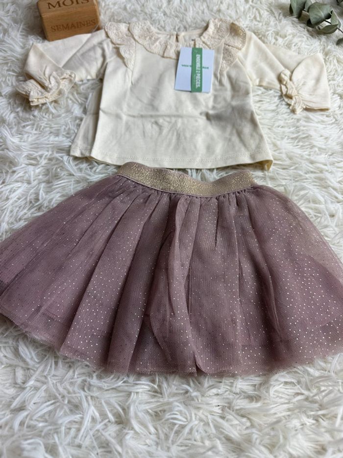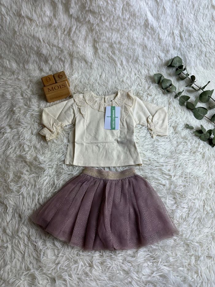 T-shirt à collerette en broderie anglaise et jupon tulle bébé fille vertbaudet taille 6 mois