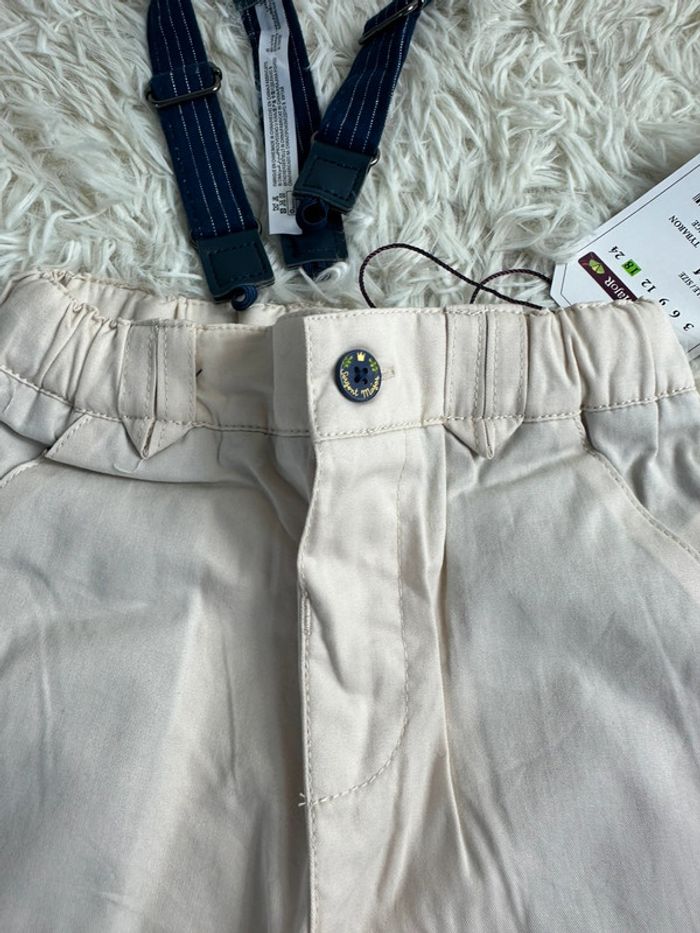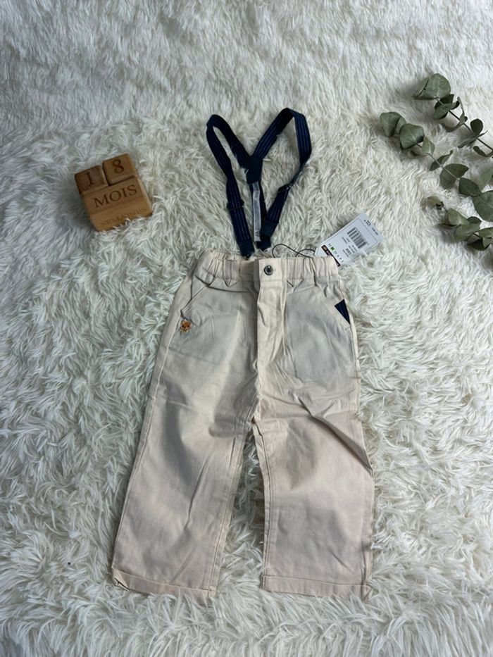 Pantalon beige avec bretelles sergent major taille 18 mois