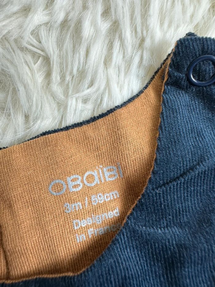 Salopette en velours bleu marine taille 3 mois Obaibi - photo numéro 4
