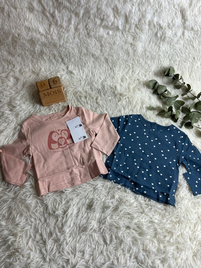 Lot de 2 tshirts manches longues Vertbaudet taille 6 mois