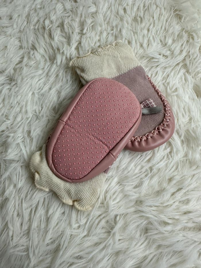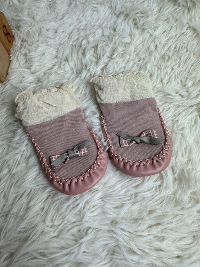Parfaits pour les premiers pas à la maison, ces petits chaussons antidérapants sont tout doux et tiennent bien aux pieds grâce à leur bord-côte élastiqué. Le petit nœud apporte une touche adorable à la tenue.