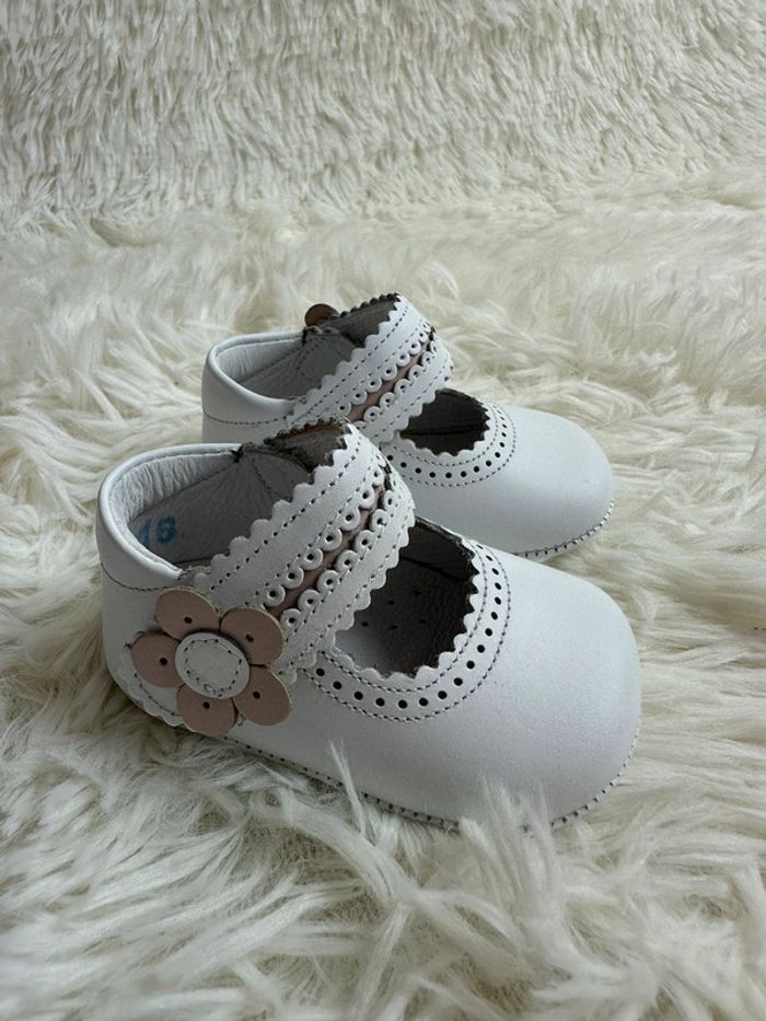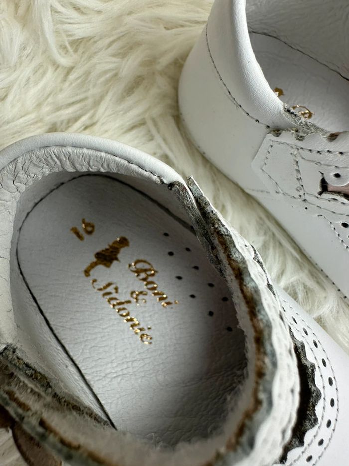 👶 Chaussons bébé cuir blanc Bonnie & Sidonie – Taille 16