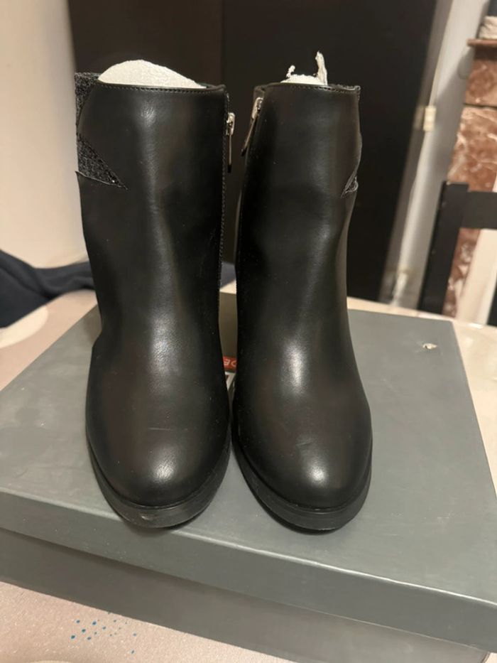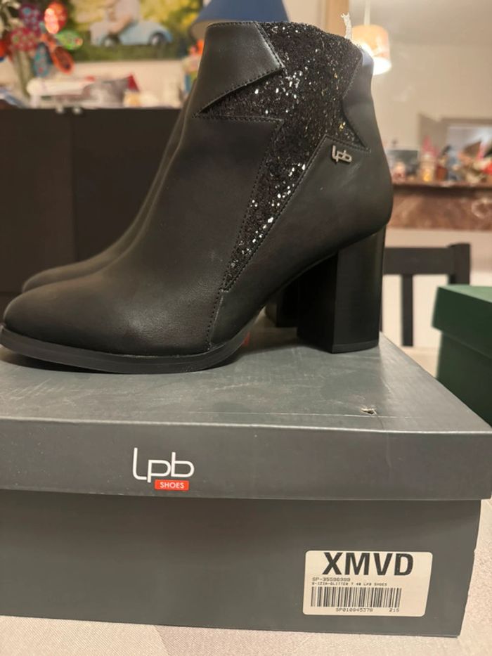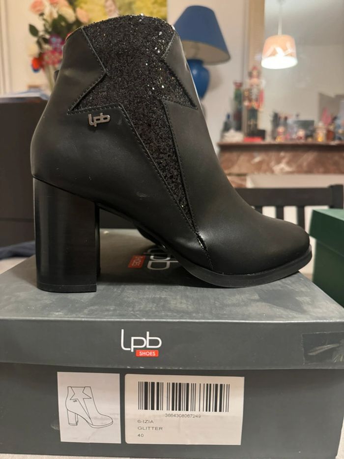 Neuves jamais portées Valeur 65€ On aime ces bottines pour leur forme délicieusement ronde mise en valeur par un talon de 8 cm qui allonge subtilement la silhouette. Elles se ferment à l’aide d’un zip sur le côté qui arbore discrètement le logo de la marque et assure une grande facilité d’utilisation. Leur sobriété et leur conception en simili cuir vous assurent élégance et distinction, avec un intérieur tout confort en textile et cuir. Pour cette bottine LPB Izia prenez votre pointure habituelle.