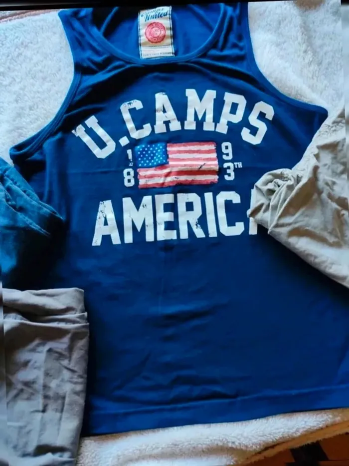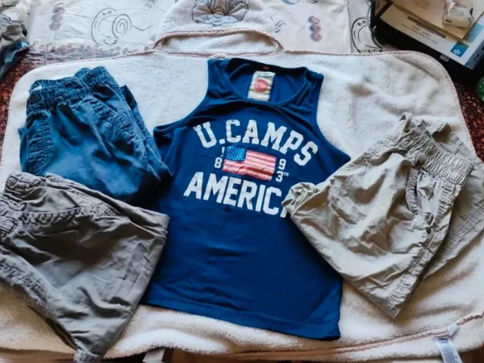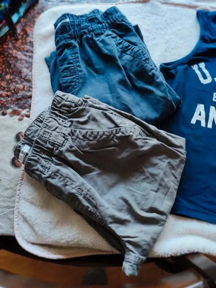 Lot été garçon taille 12 ans : 3 bermudas et un débardeur ✅ Un débardeur bleu marine marque Camps United ✅ 2 bermudas à tailles élastiques marque La Halle bleu marine et un gris ✅ Un bermuda beige taille élastique et cordon Porté mais très bon état #cyndie102116garcon12ans