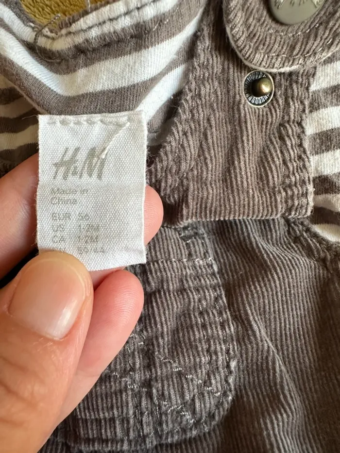 Salopette velours marron très pratique 56cm soit 1-2 mois de chez H&M