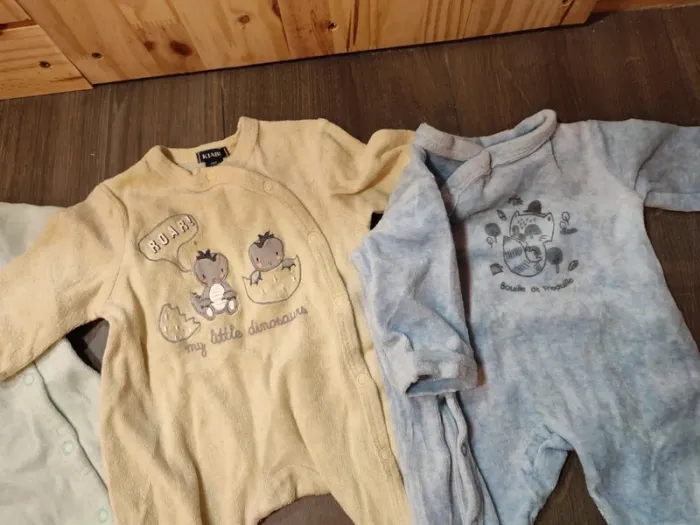 Lot 3 pyjamas mixte chat dinosaure grain de blé Kiabi très bon état - photo numéro 1
