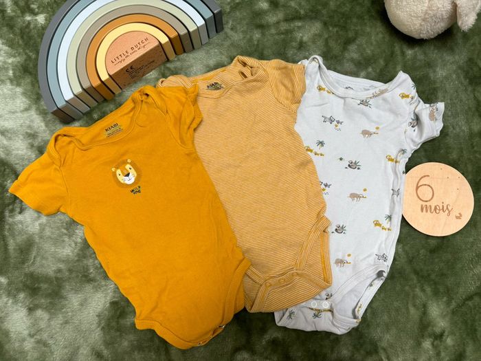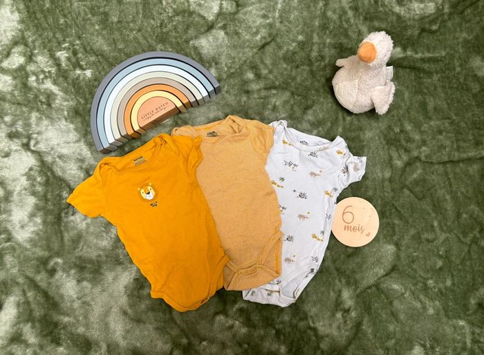 • 3 bodys couleur moutarde motif jungle • En parfait état porté presque pas mis • Taille 6 mois Retrouvez tout mes vêtements taille 6 mois sur : #6moislaurapolska des réductions sont prévus pour des lots 🌷🧸