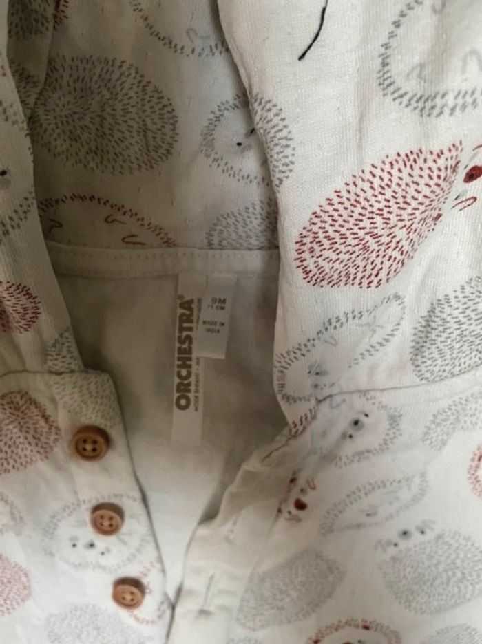 • Combi • Très bon état • Thème "J'aime les câlins". • Combinaison longue à capuche. • Hérissons imprimés all-over. • Ouverture boutonnée devant. 2 poches plaquées devant avec boutons. • Entrejambe pressionné. • Taille 9 mois orchestra • Mixte Retrouvez tout mes vêtements taille 9 mois sur : #9moislaurapolska des réductions sont prévus pour des lots 🌷 🧸