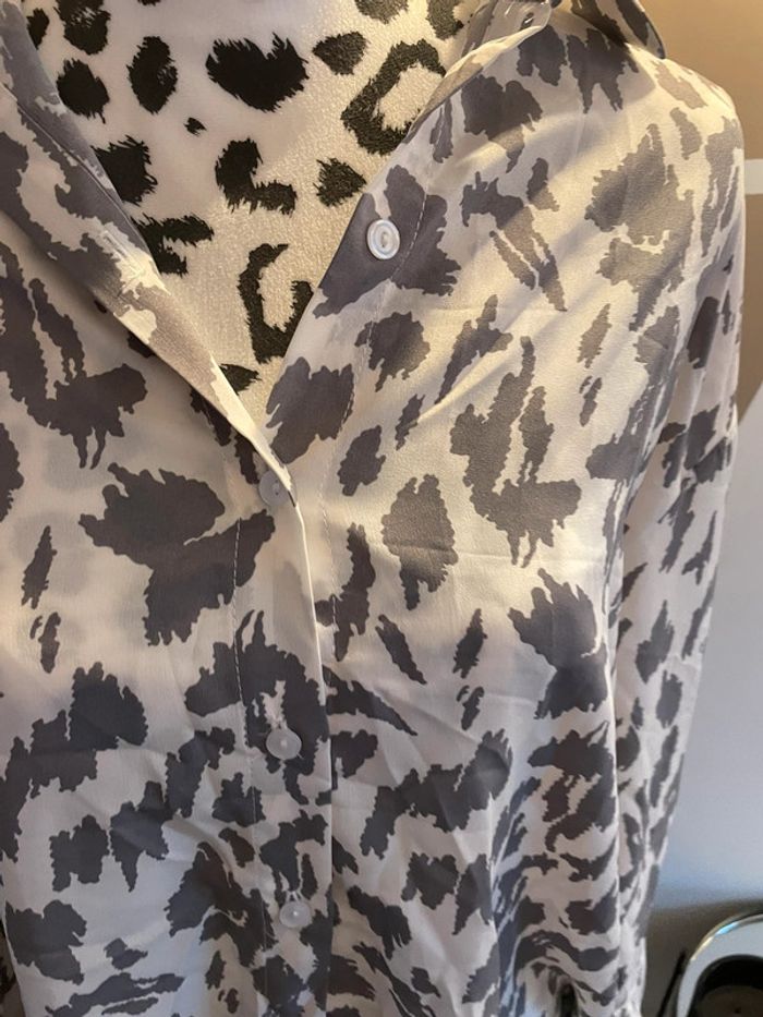 • Chemise motif léopard grise et blanche • Comme neuve jamais mise juste lavé • Taille S Retrouvez tout mes vêtements taille S (36) sur ce # #habitstailleslaurapolska 🌈