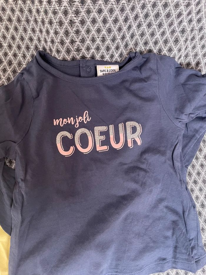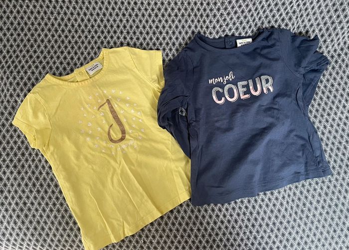 Très bon état pour les deux hormis de mini tâche sur le t shirt manche courte (voir photo 2) Le bleu est un t shirt manches longues tout les deux sont en tailles 18m #tapealoeil