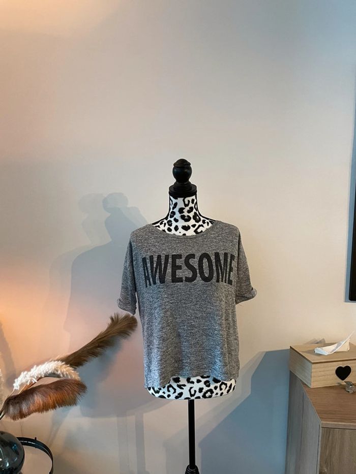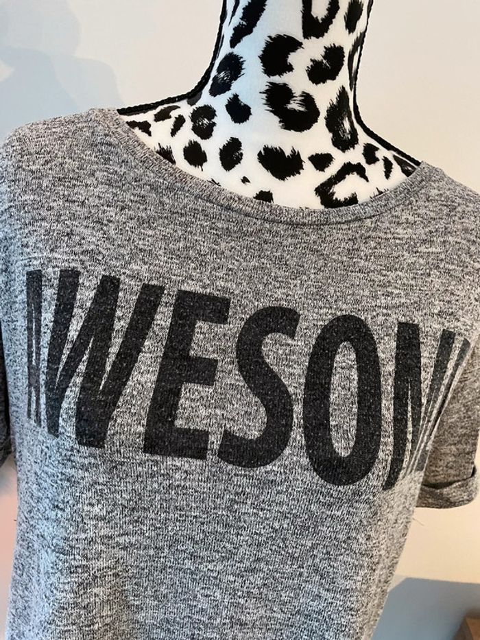 T shirt épais avec écriture noire « AWESOME » Très bon état Taille XS va aussi à un taille S Retrouvez tout mes vêtements taille XS (34) sur ce # #habitstaillexslaurapolska 🌈 Retrouvez tout mes vêtements taille S (36) sur ce # #habitstailleslaurapolska 🌈