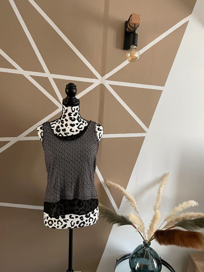 Débardeur blanc et noir. Détail pompon. Taille S. J’ai également 2 autres top de ce modèle avec couleur et motif différents à retrouver sur mon dressing . Prix de lot possible : 2 pour 8 euros, 3 pour 10,50. Retrouvez tout mes vêtements taille S (36) sur ce # #habitstailleslaurapolska 🌈