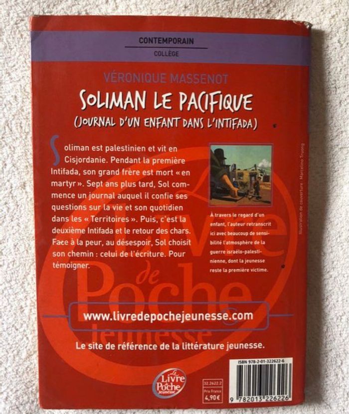 3 euros niveau collège titre : Soliman le pacifique (journal d’un enfant dans l’intifada) : bon état