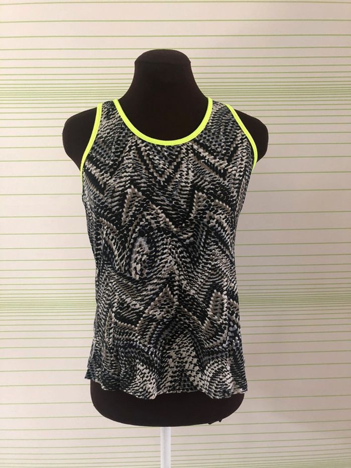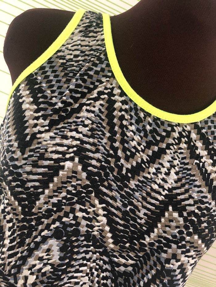 Débardeur avec motif & bord jaune fluo Taille S en très bon état jamais mis Retrouvez tout mes vêtements taille S sur ce # #habitstailleslaurapolska 🌈