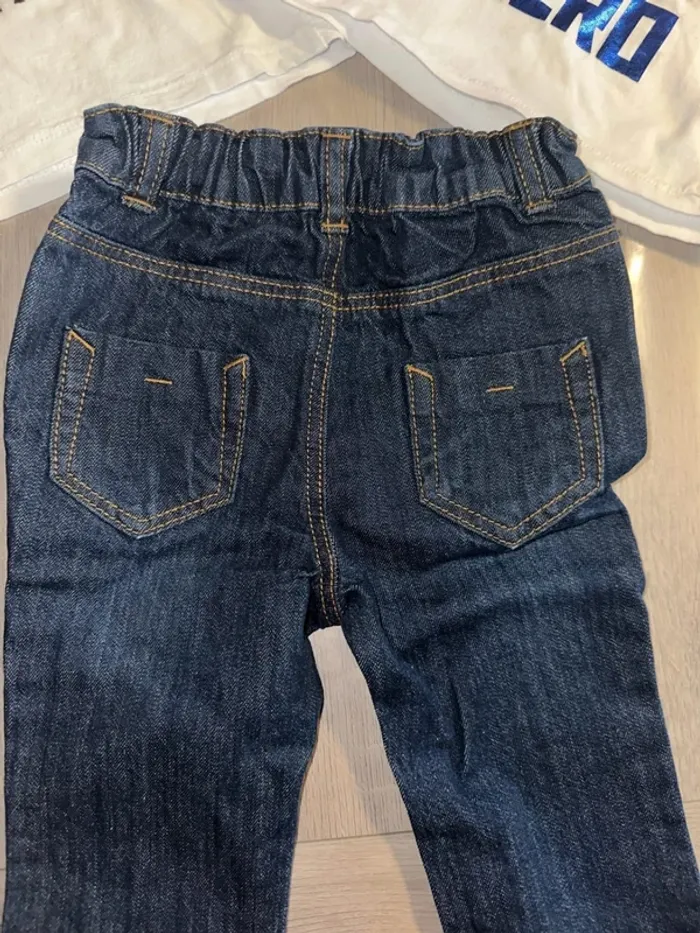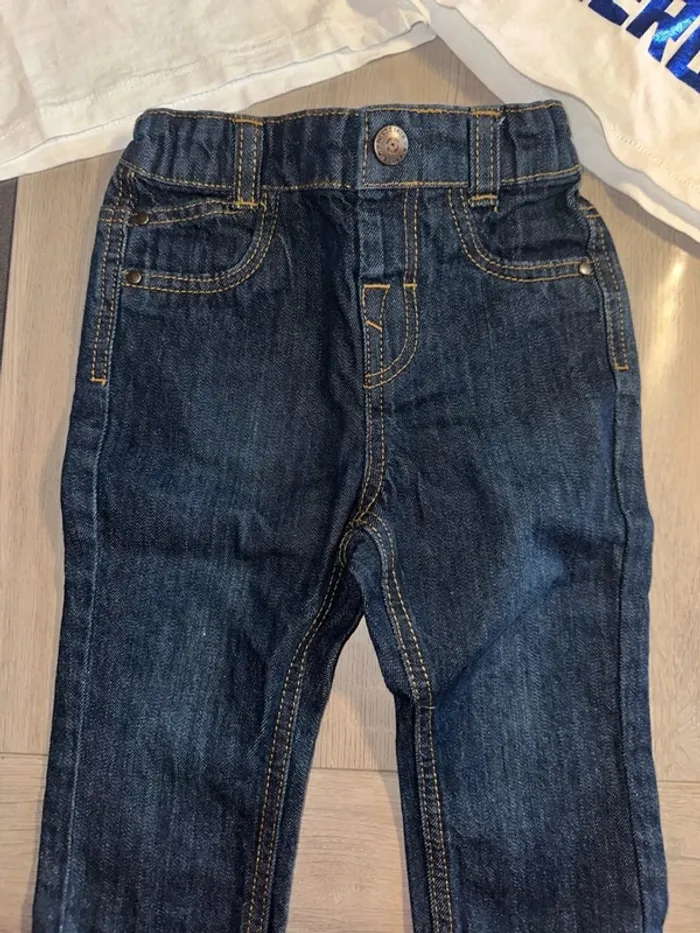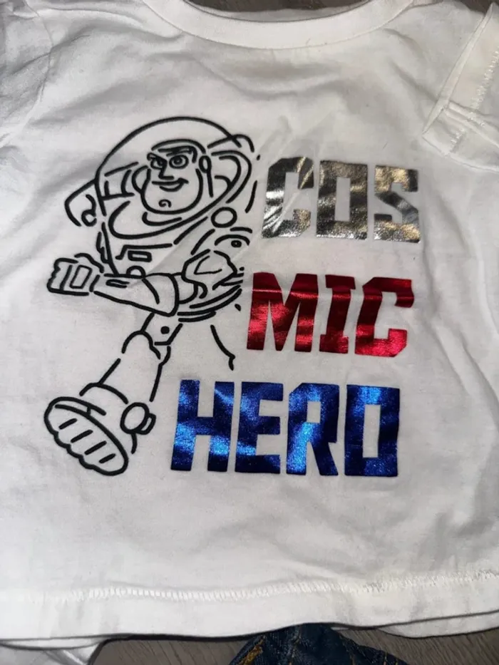 Seul le t-shirt blanc orchestra a été porté 2 fois. T-shirt de buzz et jean neuf #taille12mois #kiabi #orchestra #disney #bébé #jean #tshirtmancheslongues