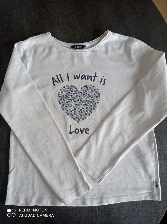 2 t shirt manches longues Okaïdi Bon état Bouts de manches du blanc légèrement passés, petites tâches à peine visibles