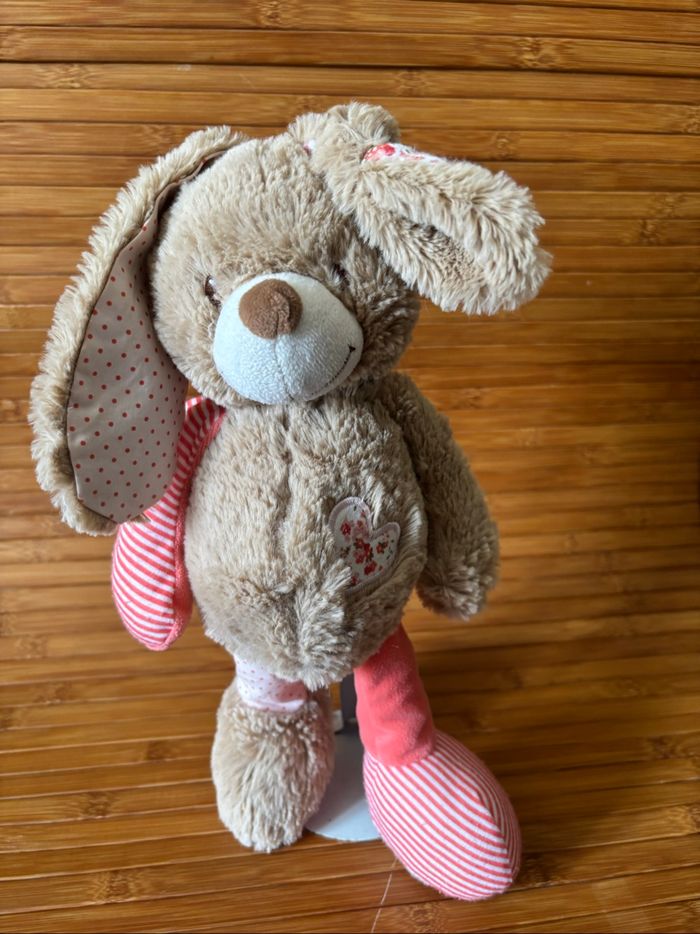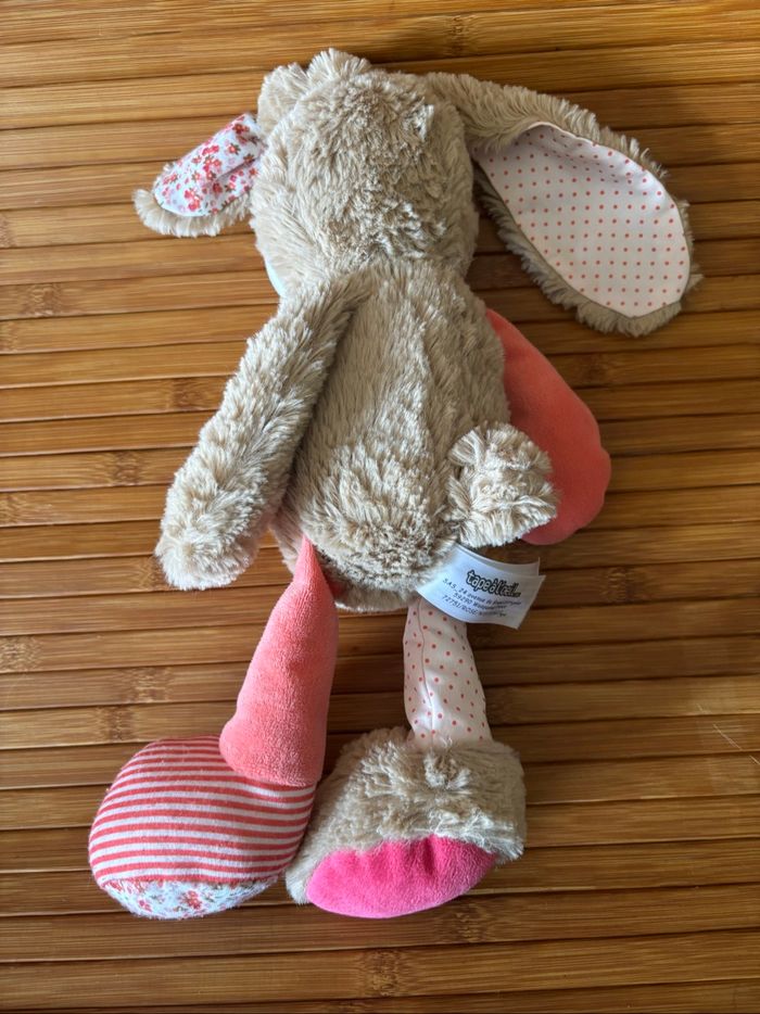 Doudou lapin beige rose cœur fleurs tao tape à l œil