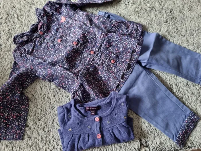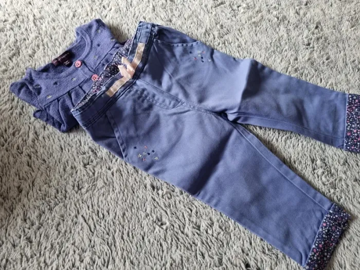 ensemble trois pièces sergent major: jean + blouse + gilet court 12 mois très bon état