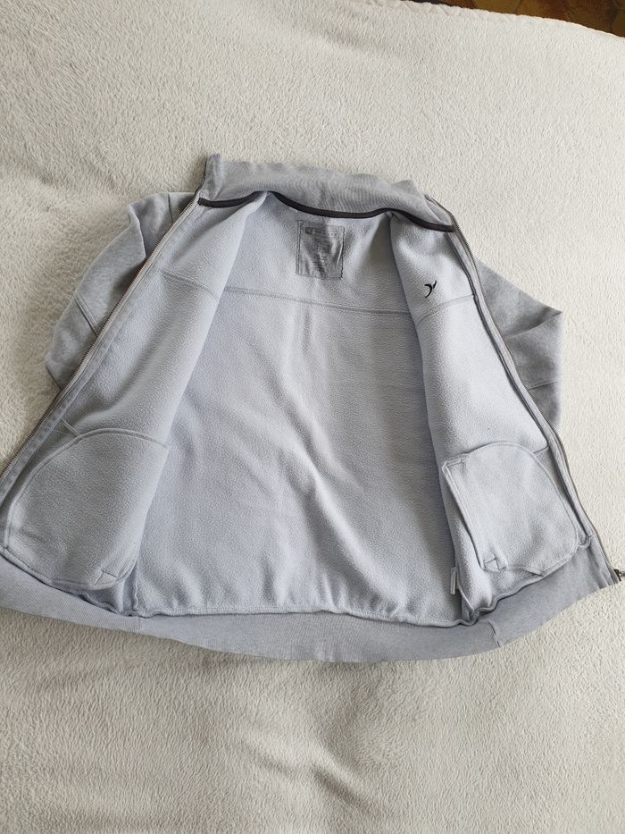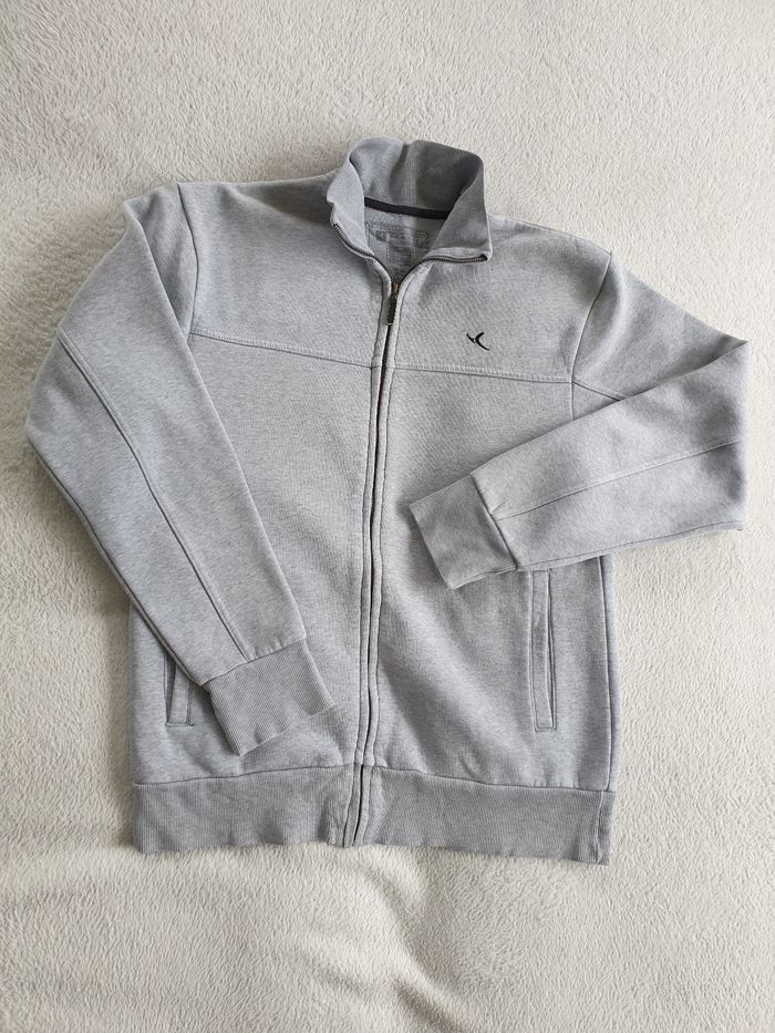 Veste de sport. S. Mixte. Avec poches et fermeture éclair. Assez epaisse et en coton. Grise claire.
