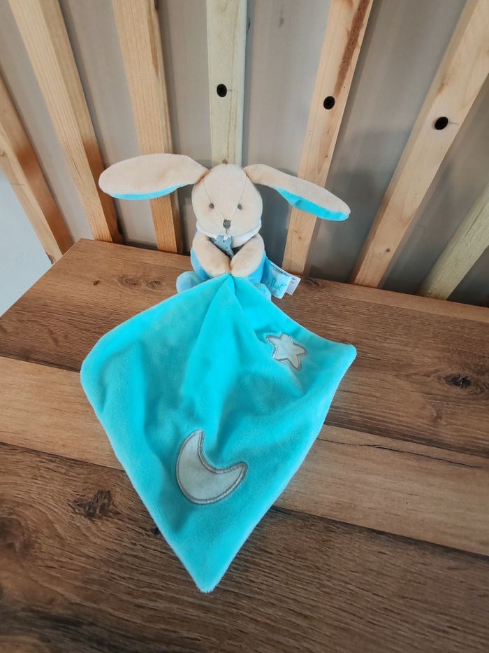 Lapin beige baby nat mouchoir bleu fluorescent - photo numéro 1