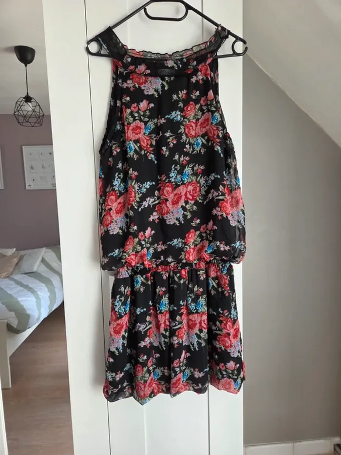 Robe noire fleuri femme taille 38 - photo numéro 1