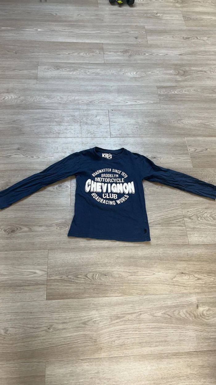 À vendre t-shirt manches longues en 10 ans, marque Chevignon, légèrement décousu sur la manche droite à l’arrière comme le montre la dernière photo
