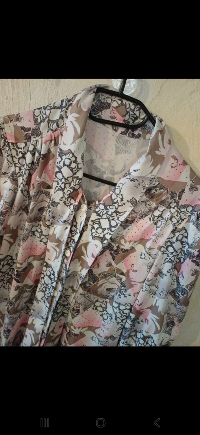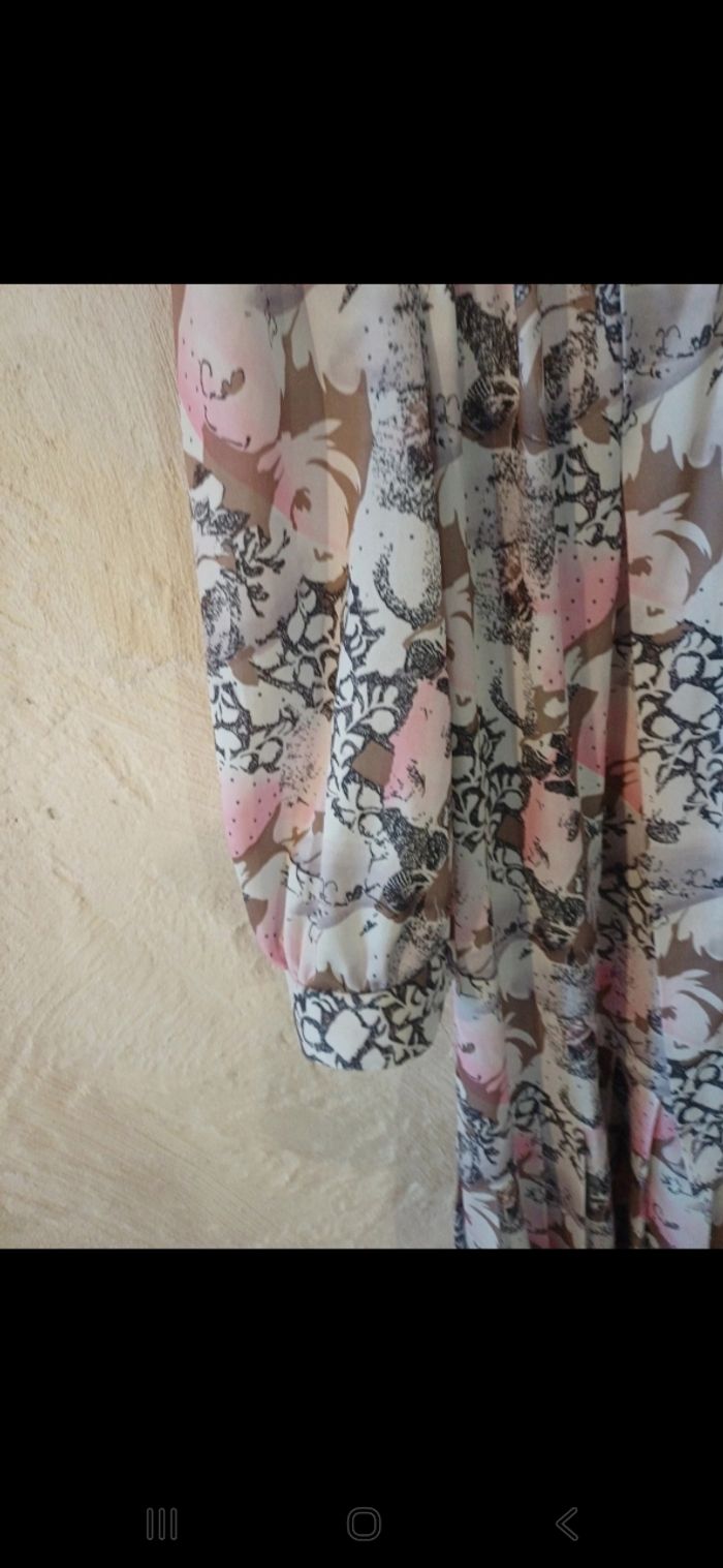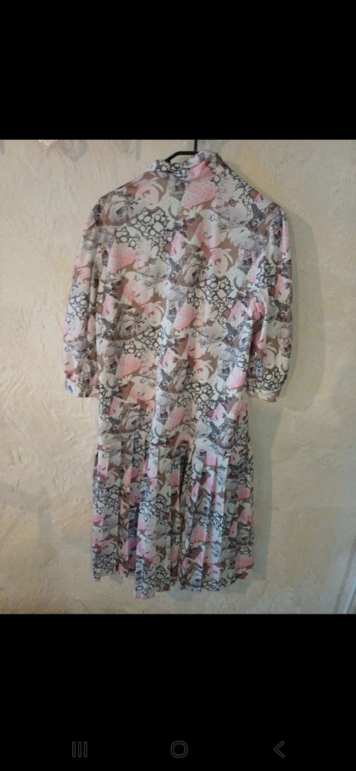 Robe à motifs, manches 3/4. Longueur: 110 cm. Plissée sur le bas. Comme neuve