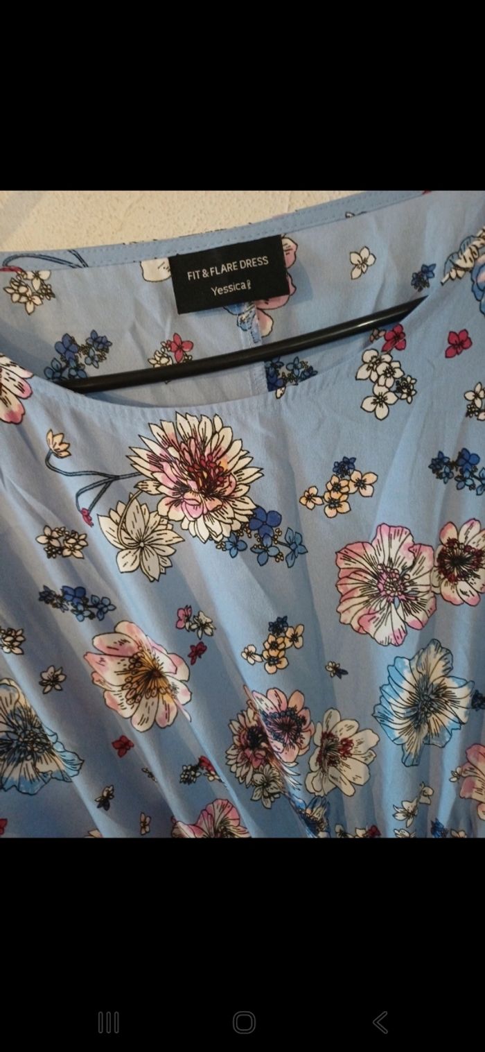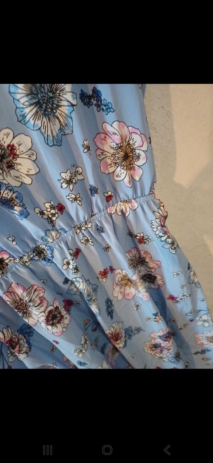 Robe fleurie , très légère. Elastiquée à la taille. Longueur: 90 cm