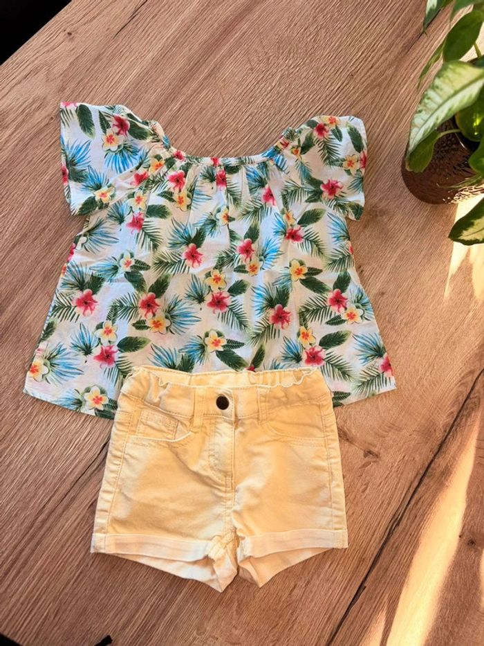 Ensemble été blouse zara fleuris 2/3 ans short charlie et prune 3 ans , Très jolie porte et très léger En Parfait état Laisse à 8 e