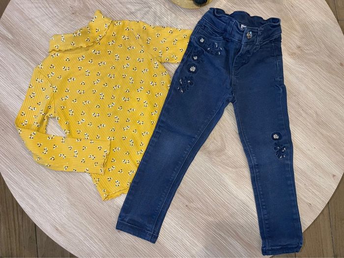 haut okaidi , et jean tape à l’œil Taille : 3 ans , très bon état laisse à 10,50e l’ensemble
