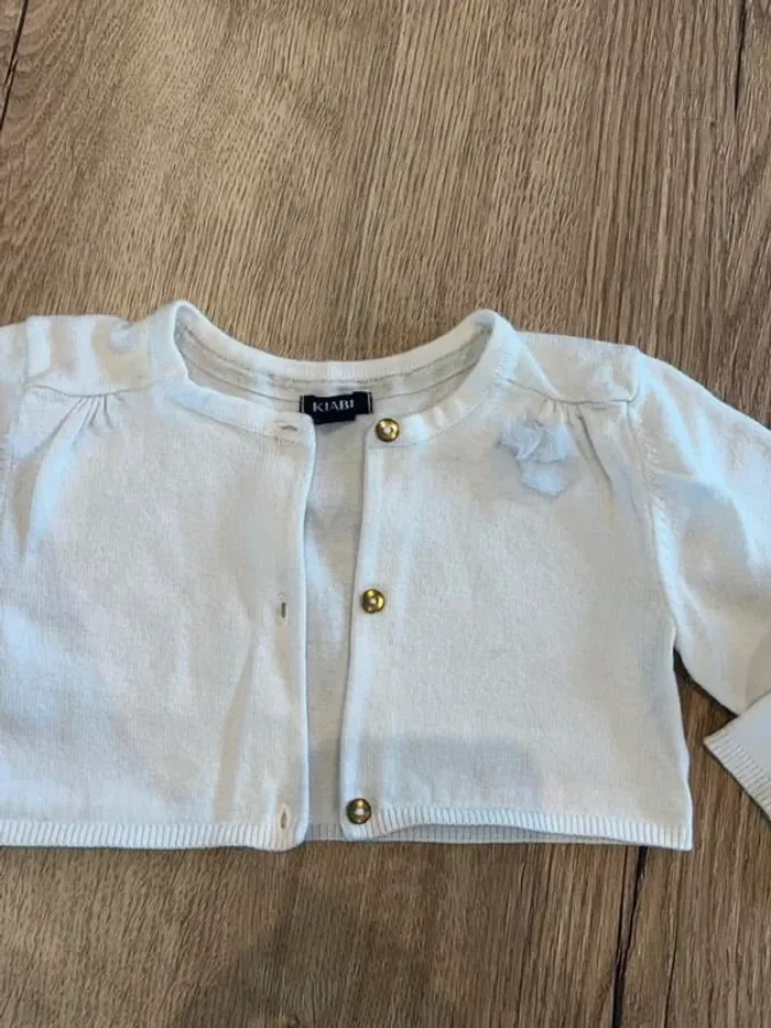 Gilet boléro avec fleur Marque : kiabi taille : 18 mois Idéal cérémonie Comme neuf Laisse à 4 e