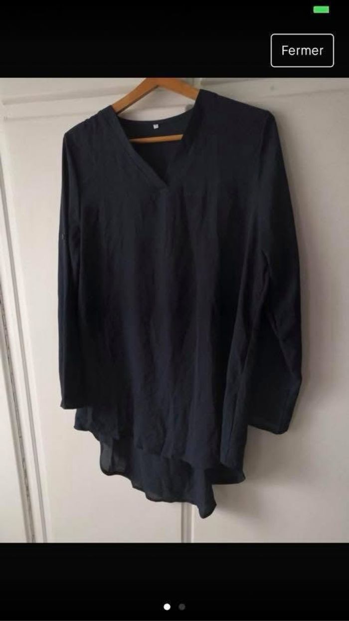 Tunique longue neuve . Juste lavée et repassée . manches retroussables avec bouton pour les attacher. Taille 44 . 5€