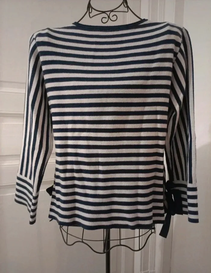 Pull marinière très bon état avec rubans à nouer de chaque côté taille 38 #valkyetcie_38femme #mariniere38femme #pull38femme