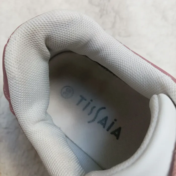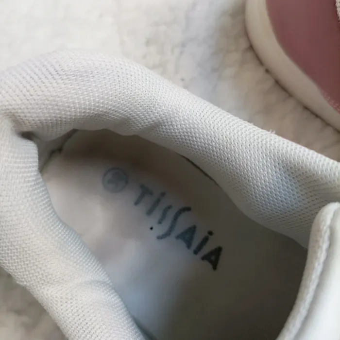 Baskets Tissaia pointure 39 blanc et vieux rose en bon état général, légères marques devant et un endroit légèrement décollé voir photos. D'autres chaussures dans mon dressing #valkyetcie_chaussures #baskets39femme #sneakers39femme #baskets39fille