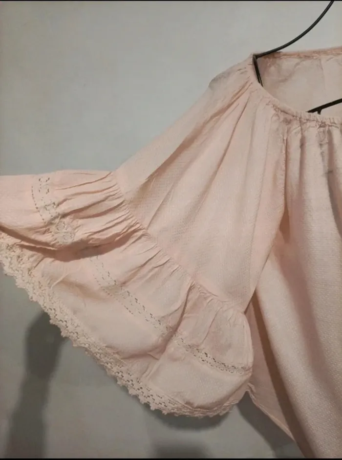 Blouse abricot légère manches larges Women Only taille 38 très bon état Étiquette composition coupée #valkyetcie_38femme #top38femme #blouse38femme