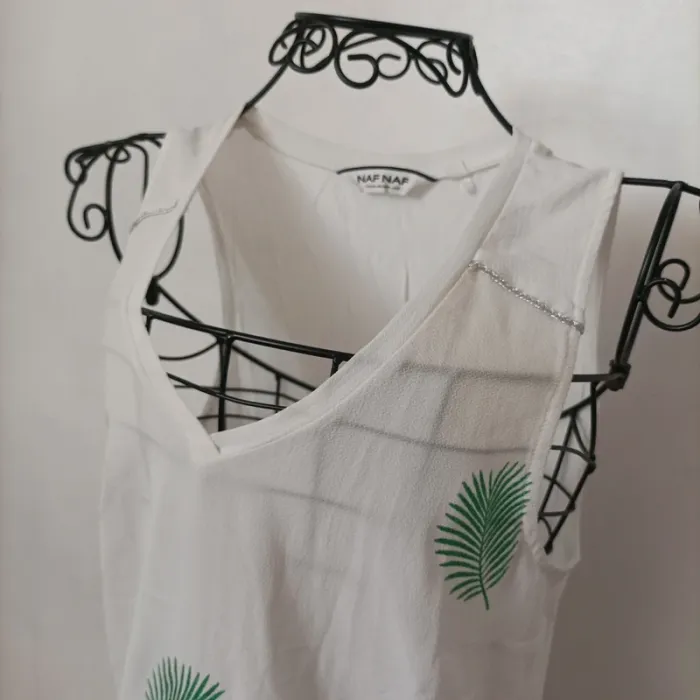 Blouse Naf Naf légèrement transparente motifs verts paillettes en très bon état D'autres affaires dans mon dressing #valkyetcie_36femme #nafnaf36 #blousefemme36 #blouse36femme #topfemme36 #top36femme #femme36 #36femme